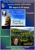 В программе прозвучат песни В.Берковского, Ю.Визбора, А.Загота, Ю.Кима, С.Никитина, Б.Окуджавы, М.Щербакова и других авторов.