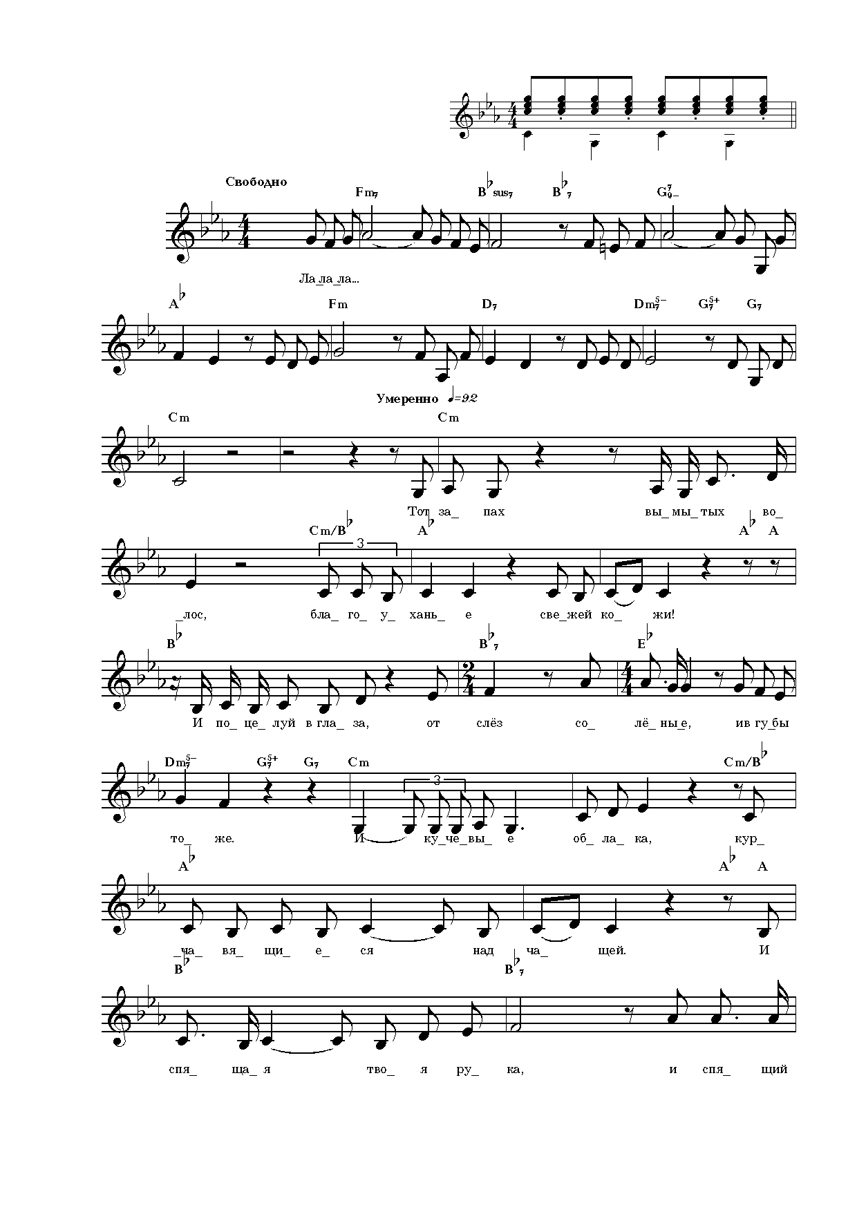 По многочисленным заявкам публикую ноты песни С.Никитина на стихи Д.Самойлова "За городом" в том виде, в каком удалось записать (в основном неточности будут касаться исполнительских вариаций ритма), основываясь на видеозаписи, размещенной здесь: http://www.vilner.net/nikitiny/scripts/ ... ongid=1390