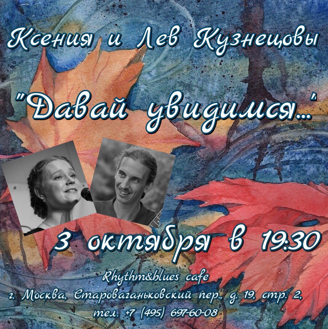 3 октября 2017г. в 20 часов в "Rhythm-&-blues cafe" начнётся концерт Ксении ( вокал) и Льва (гитара) Кузнецовых.